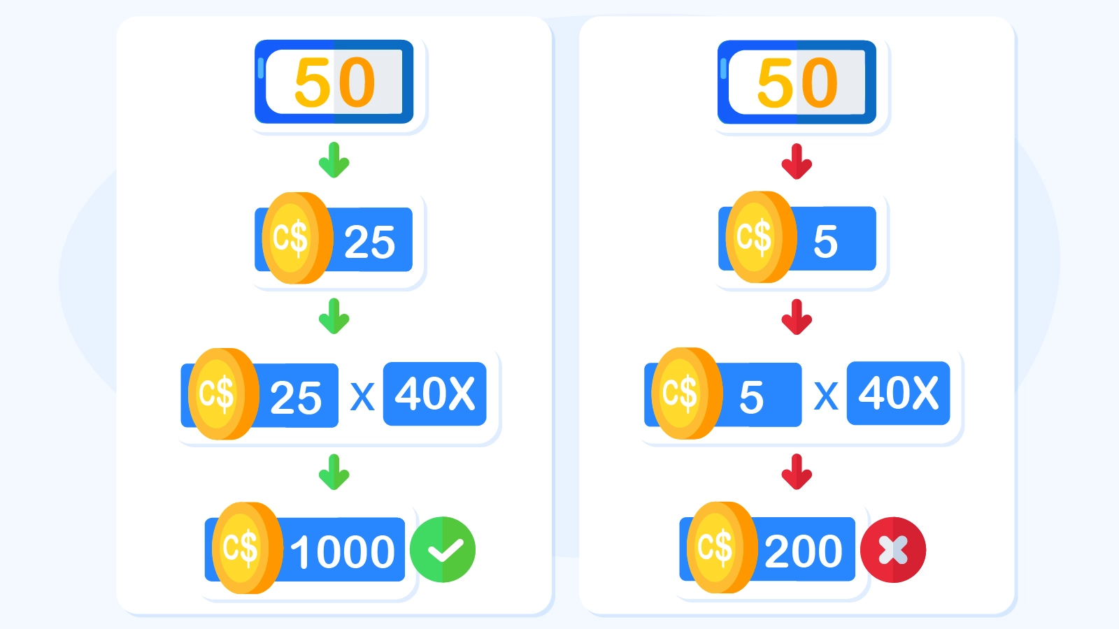 What you need to wager: C$25 in winnings × 40 wagering = C$1000 in total bets