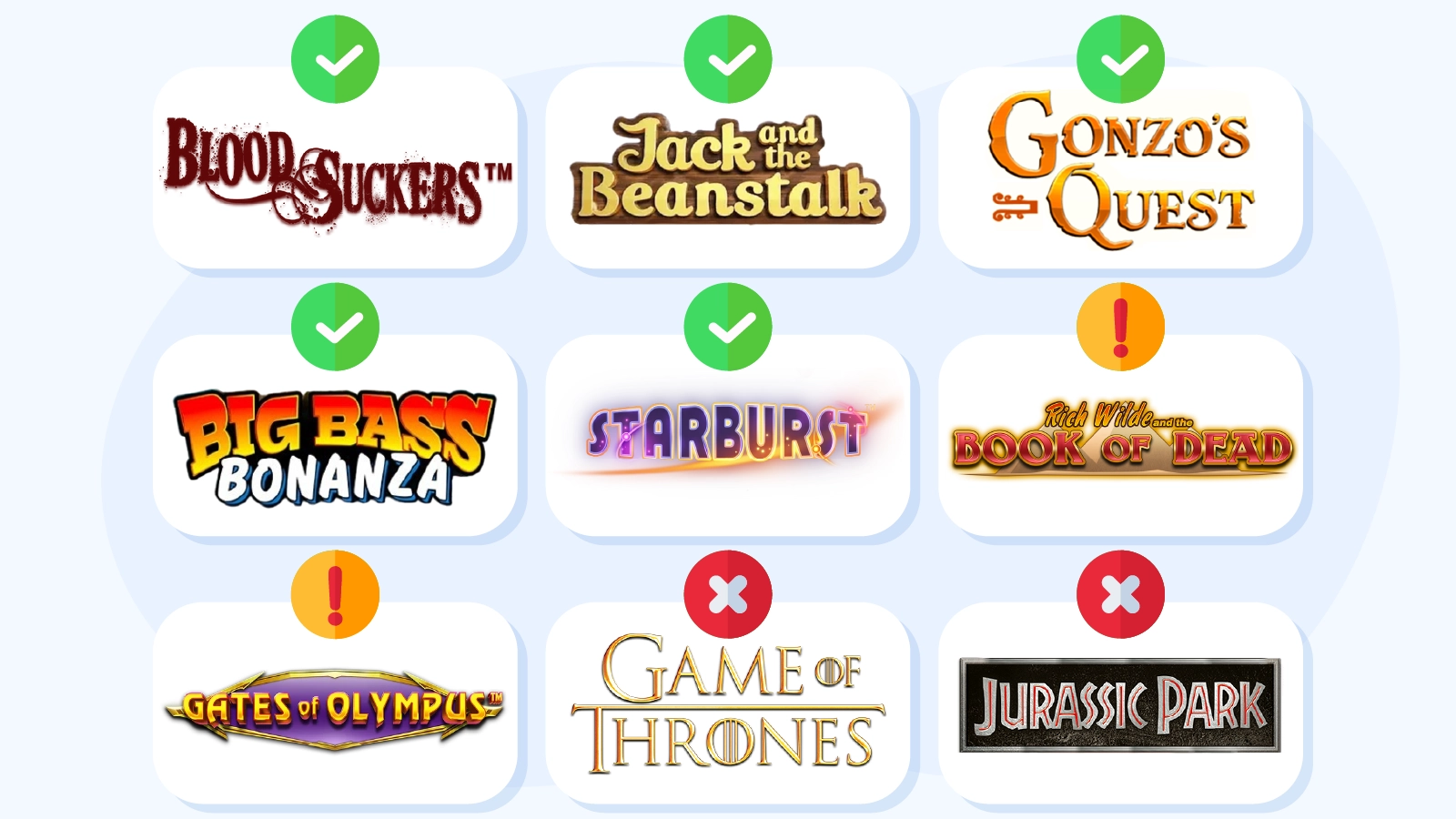 - Low variance: gives frequent small wins and keeps your balance stable, it’s ideal for completing wagering without draining the budget. For example, Starburst and Blood Suckers are low variance slots